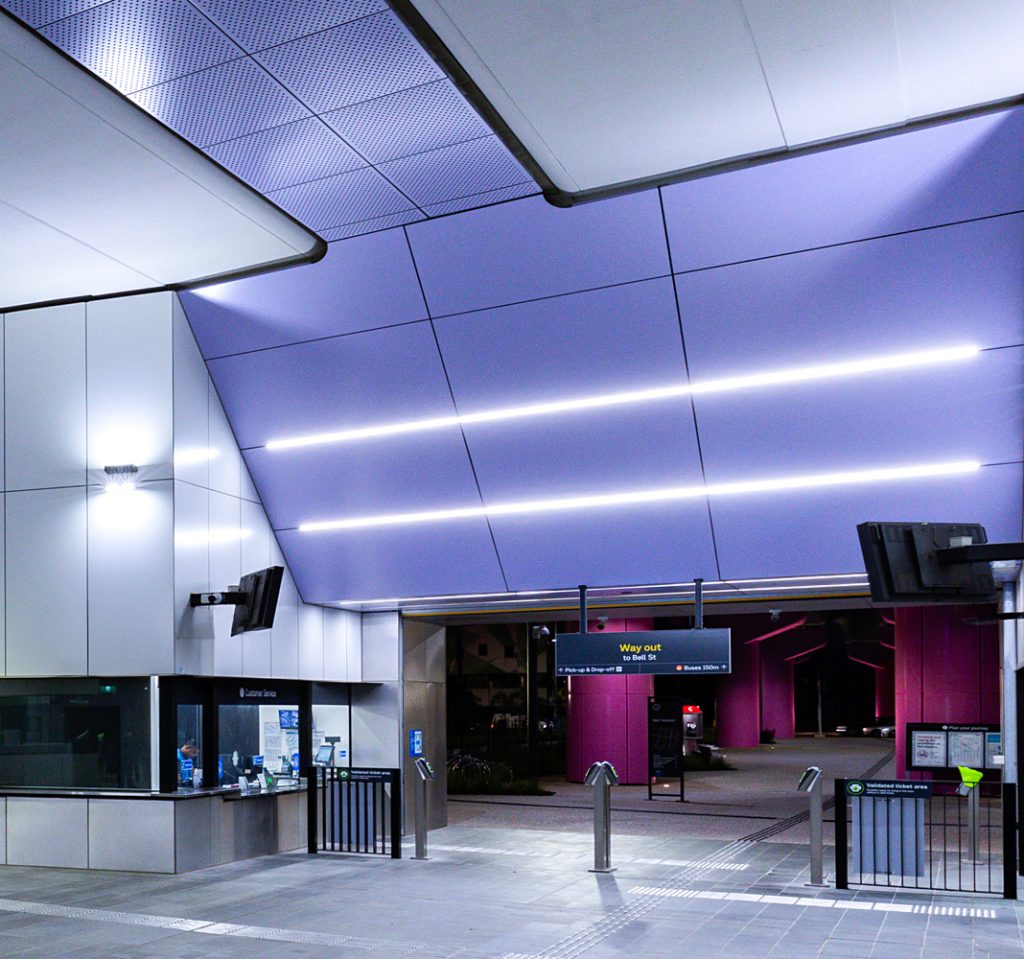 The station’s facade pays respect to Preston’s post-war heritage, incorporating a three-dimensional pattern of local roofscapes in striking pink and purple glazing that reflects the area’s art and culture. To complement the station’s modern structural aesthetics, the interior features Xero’s slimline linear XTI 2.0 Slot IP66 | IK11 profile.