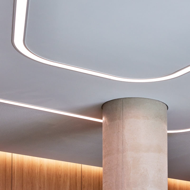 The XTA | 2.5 Loop Recessed was chosen to create an illuminated ambiance within the sit-down cafe locations whilst mimicking the various curves in walling and floor materials.