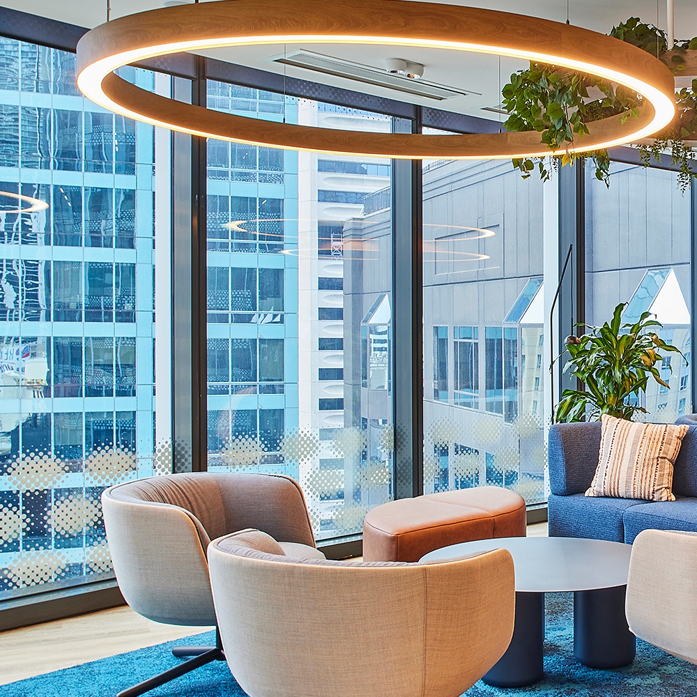 This exceptional workplace fit-out located in the Sydney CBD is made up of 6 working floors and 2 specialty levels. The innovative design teams selected the XTA | 2.5 Loop series with XTEK wood grain finished textures that bring together the warmth of the wood flooring and circular suspended greenery displays.