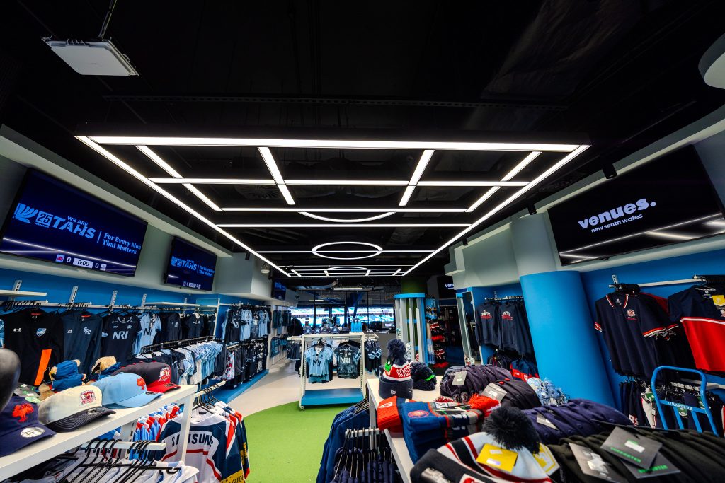 Next time you find yourself at the Merchandise Store in Allianz Stadium, Sydney, take a moment to look up. You’ll be greeted by a stunning linear light display that truly captivates the eye.