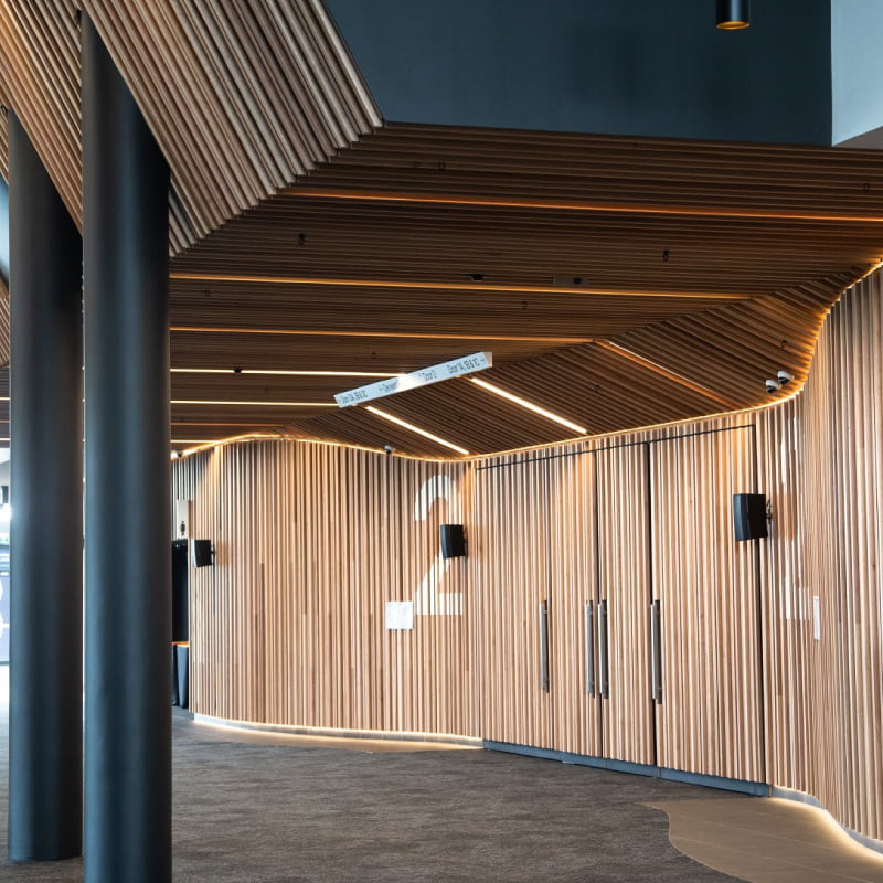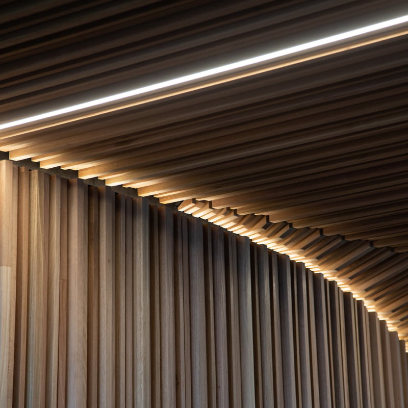 Completed in just 7 months, the Xero XTA 1.5 Square IP 20 profile in textured black finish features alongside local Tasmanian timbers in the main entry foyer.