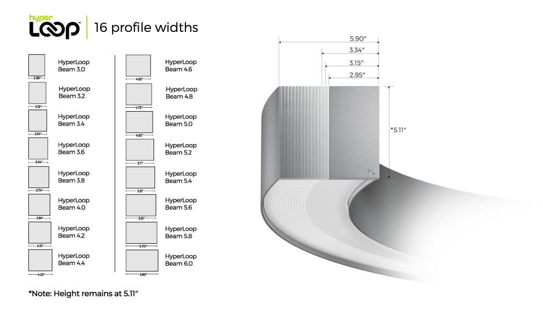 | Bend Radii | 16.92”R / 32.67”R / 48.42”R as standard with custom radii available | |||